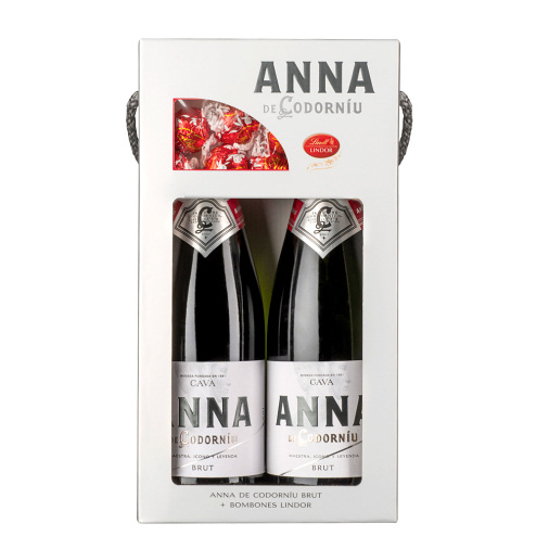 Anna de codorniu estuche cava brut + bombones lindor pack 2x75 cl