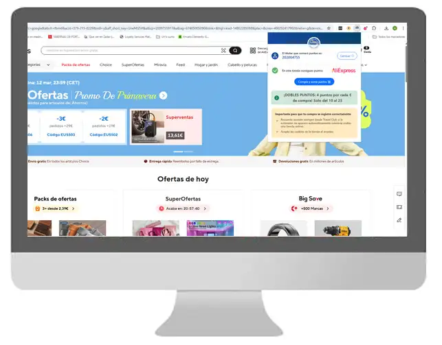 3. La extensión te avisará cuando estés en una web en la que puedas sumar puntos.