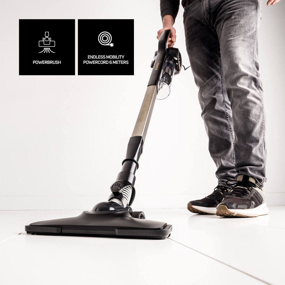 El aspirador escoba con cable Homeland Endless de Taurus ofrece 600W de potencia y 18.000 Pa de succión. Su depósito de 800 ml es
