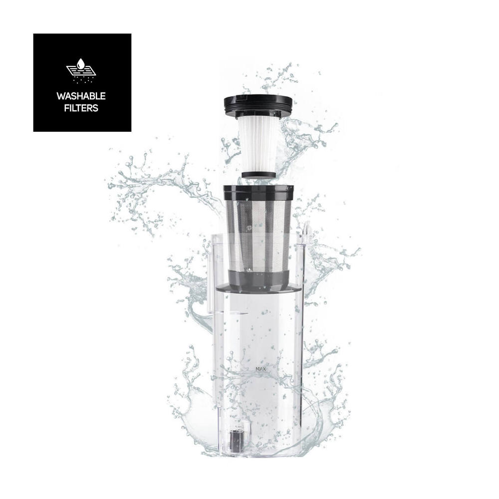 extraíble y fácil de vaciar, y su sistema de filtración con filtro HEPA11 mejora la calidad del aire. Con zapata apta para todo tipo de suelos, cable de